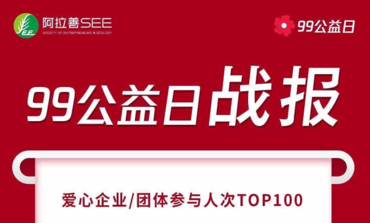 2019年99公益日三天(9月7、8、9日),阿拉善SEE公益機構共獲得 621,814人次支持,3,678萬元善款。