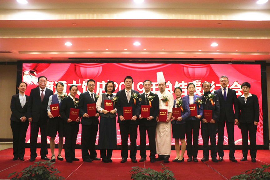 飯店領(lǐng)導為2019年度的優(yōu)秀員工、十佳員工和先進集體頒發(fā)了獎狀和獎金。