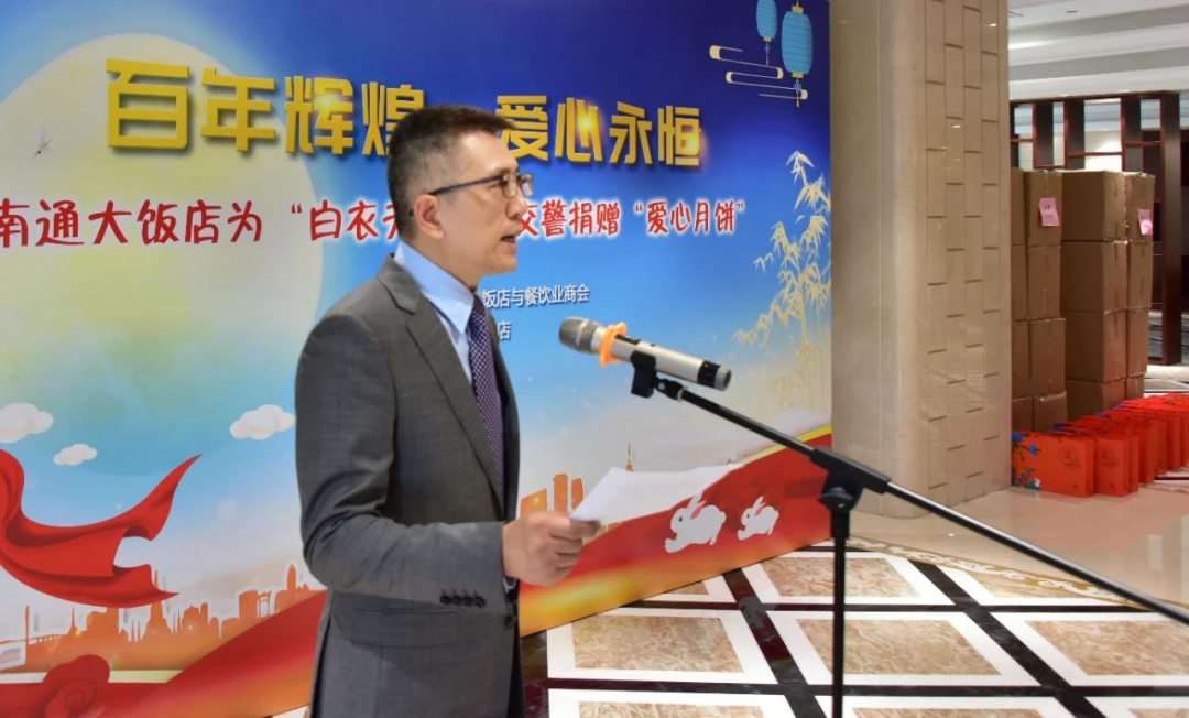在中秋月圓、國慶歡騰即將到來之際,南通大飯店舉辦了“百年輝煌•愛心永恒”中秋愛心月餅捐贈活動?;顒游繂柫四贤ㄊ兄г暇?、揚州疫情戰斗的醫務工作人員代表和堅守疫情防控一線的交警代表。